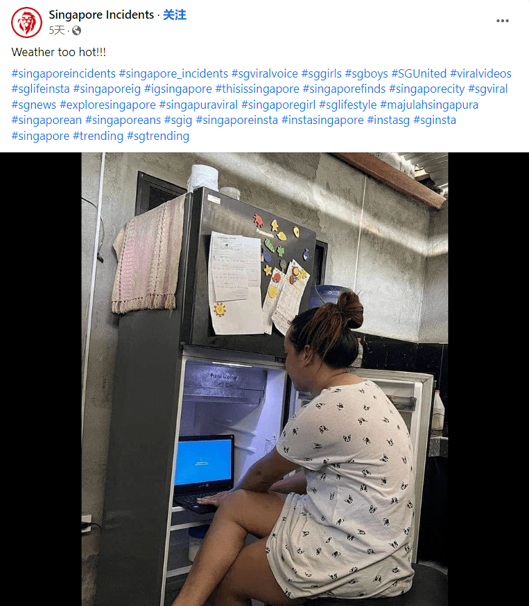 比中国广东更潮更热,新加坡的高温天气,让这名疑似是前不久刚来到新加坡旅游的中国网友吐槽。
