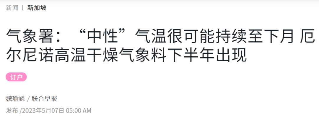 很多在新加坡生活的人,现在都迫切期待新加坡鞥马上下一场暴雨降降温,但让人失望的是,或许在2023年,新加坡的高温天气将很难得到缓解。