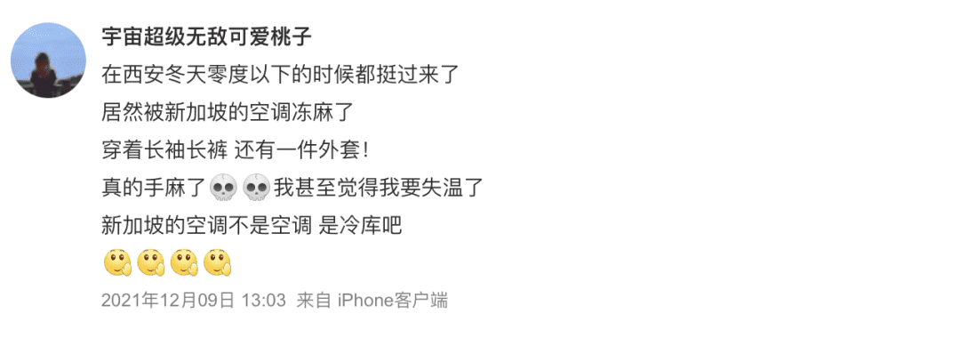 总的来说,大部分人对于新加坡空调冷已经做好了心理准备,不行就多穿衣服嘛,多大个事嘛~