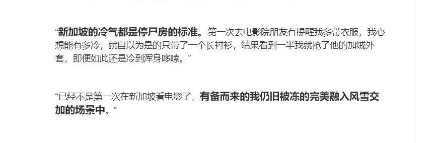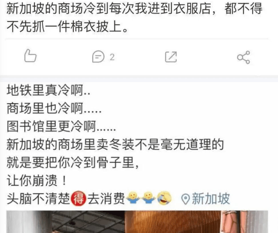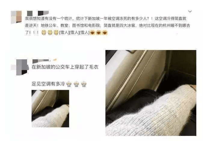 总而言之,只要是去新加坡室内场所和搭公共交通,进去前都得看看自己有没有穿够衣服,否则,遭遇就有可能和下面这些网友一样......