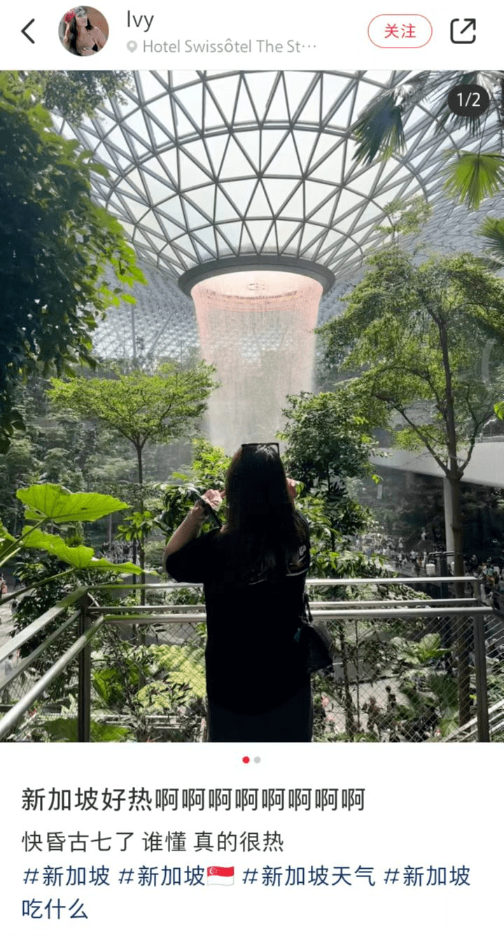 面对着星耀樟宜内的绿树和雨旋涡,也不能让这名网友“平心静气”,表示自己差点要昏过去了~