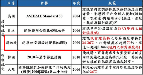 作为一个资源匮乏的小国,新加坡一直在提倡建筑节能的新加坡,公共场所安装的大多是带有除湿功能的VAV中央空调系统。而根据本地空调的节能设计规范,温度设定在24-26℃之间才可以最大限度节能。