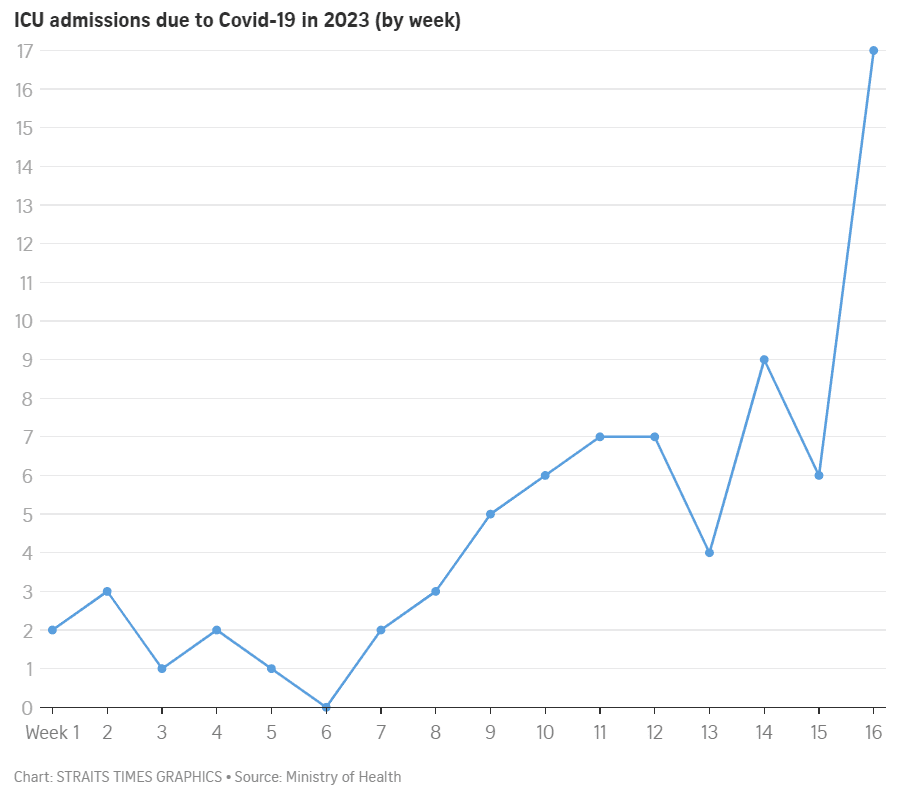 具体来看,4月23日至29日期间,新加坡一共有568人因新冠住院,其中,还有15人被送往重症监护病房ICU!