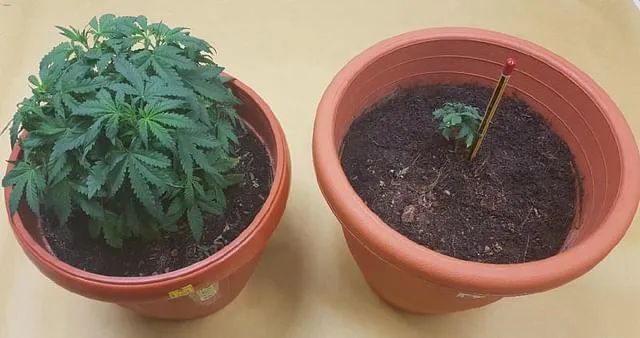 种植的两盆大麻中,一盆刚刚发芽,而另一盆长势极佳。如果不是肃毒局发现的早,“种植基地”估计就要变成“制毒厂”了。