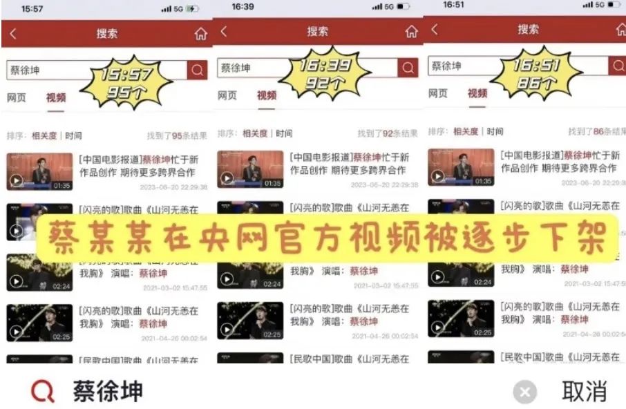 今早,中国官方各大平台纷纷下架蔡徐坤作品。包括央视新闻、爱奇艺、北京卫视官方微博及央视新闻客户端在内均已搜索不到蔡徐坤相关内容。