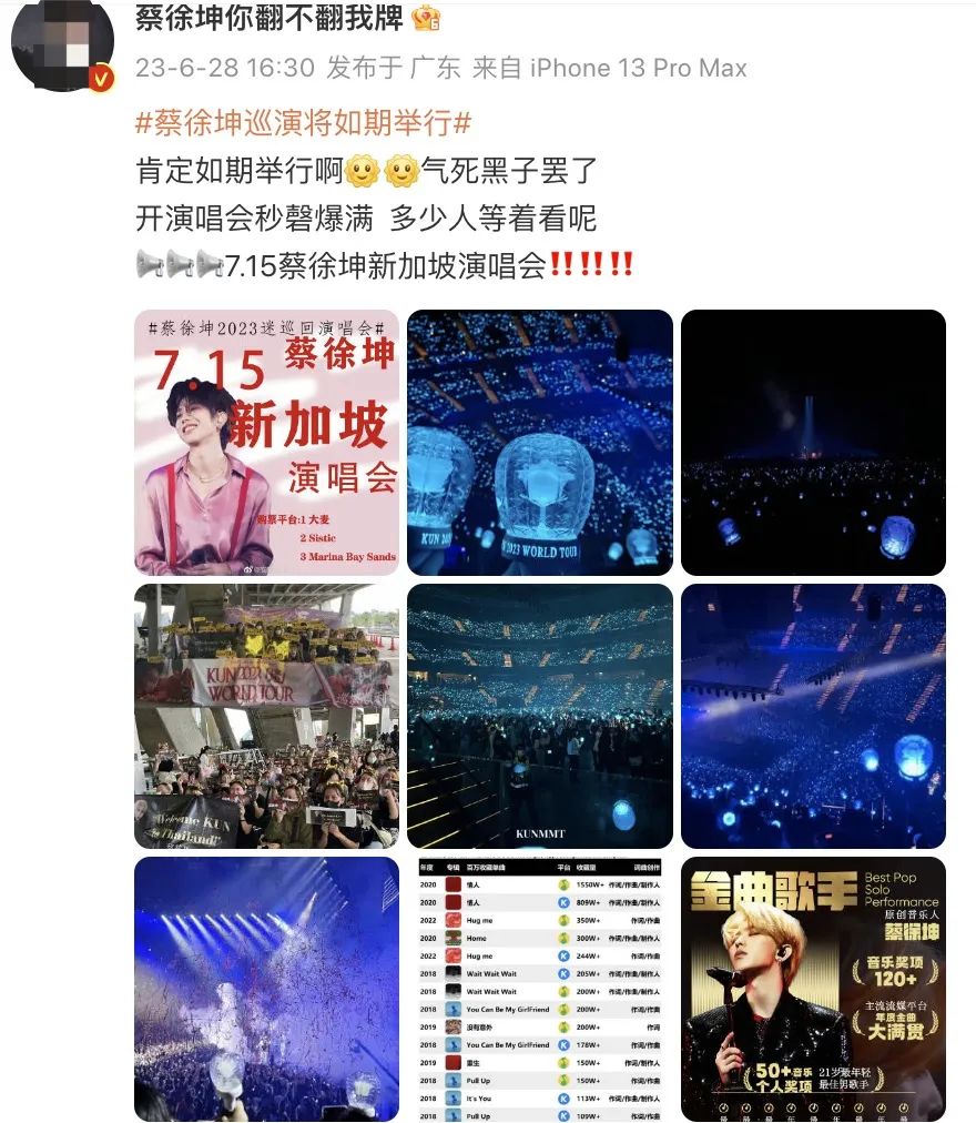网上也疑似拿到内幕消息的粉丝力挺蔡徐坤,认定海外巡演不会取消