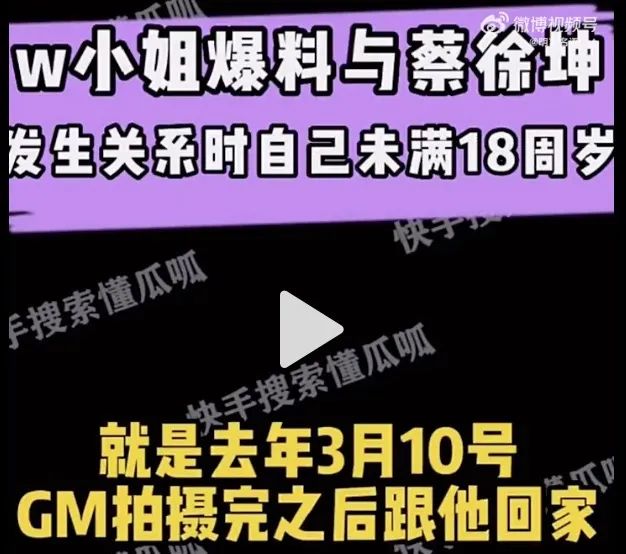 12点30分,狗仔继续爆料蔡徐坤约会另一个情人W女士,也是未成年。