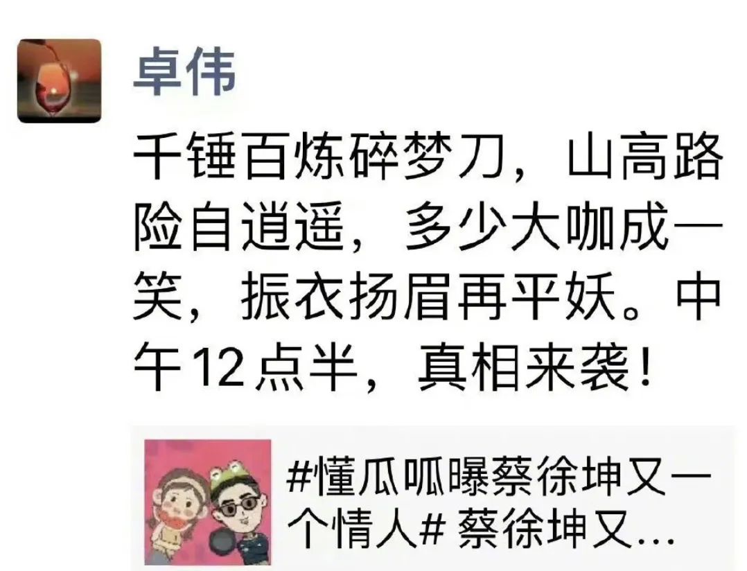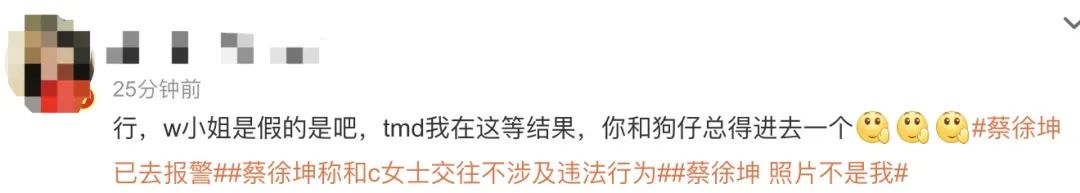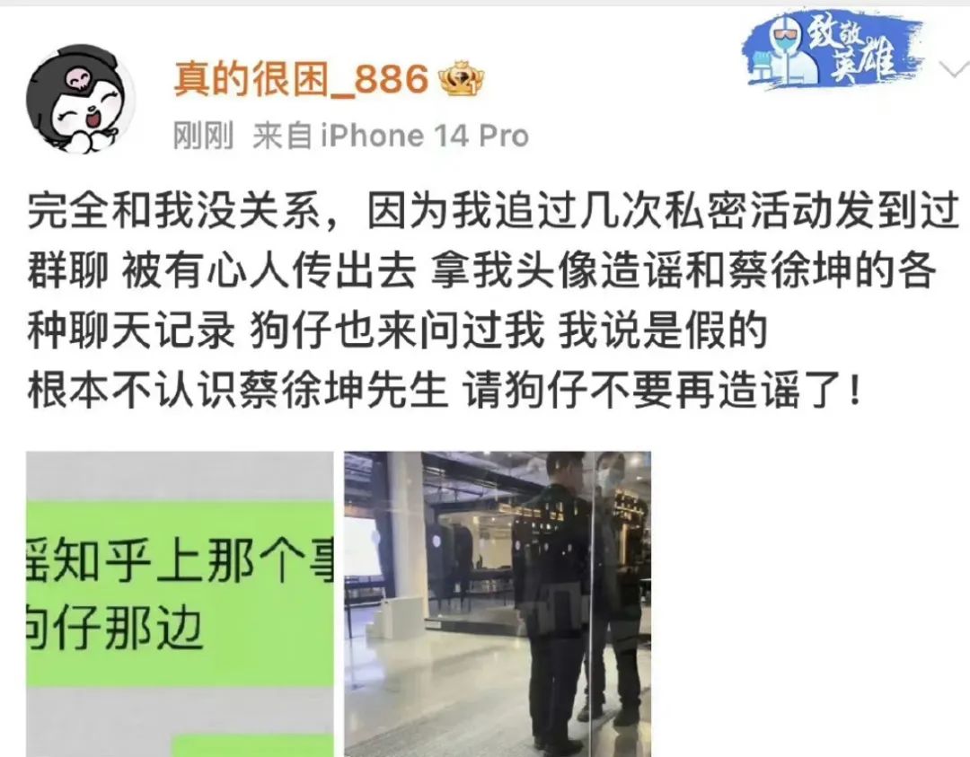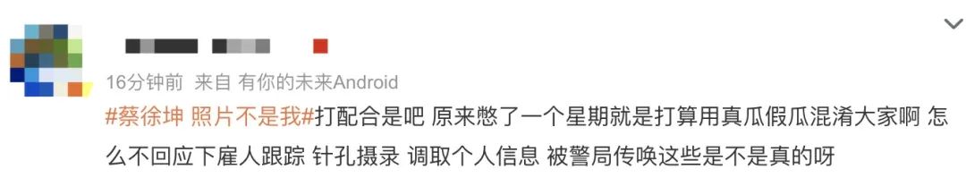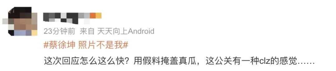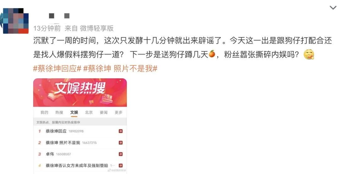 但问题在于狗仔爆料都还没结束的时候,蔡蹦出来打假了。