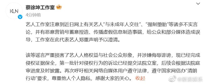 蔡徐坤强调自己不涉及违法行为。疑似又有点逆风翻盘的意思。