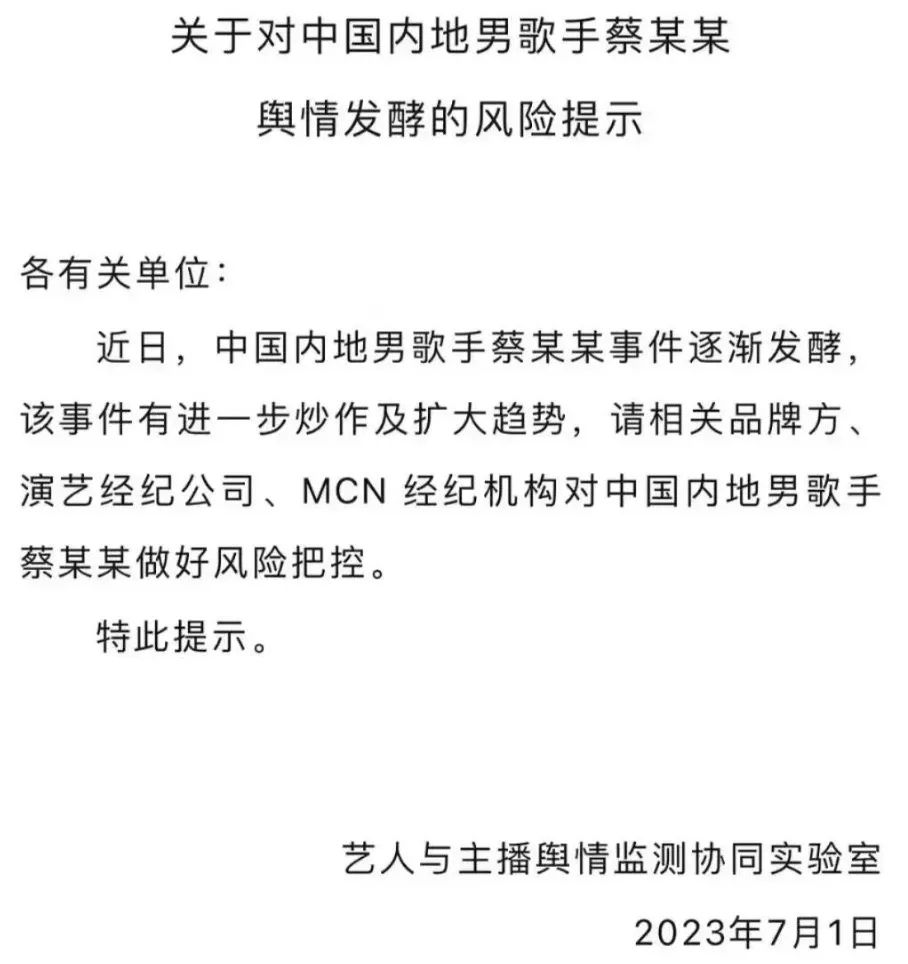 而这一轮有关蔡的争议话题,截止到发稿前,舆论未息。
