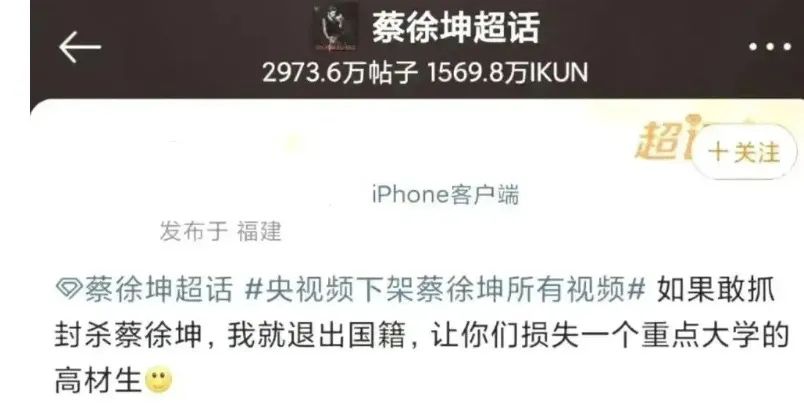眼看着偶像要塌房,蔡也有自己的忠实粉丝放话,封杀就退籍。