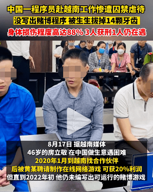 九派新闻报道,一程序员没写出赌博游戏代码,被对方囚禁虐待,生生拔掉14颗牙齿!