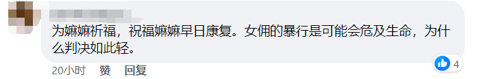 有人表示,这名女佣的行为绝对不可以被原谅,认为女佣应该在牢里待更久时间。