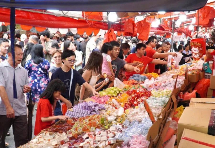 牛车水整一条年货市场都沉浸在节日红红火火的氛围之中。