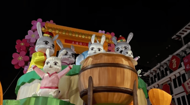 十米高的兔子灯,而且是“福兔全家”,一口气一整窝整整齐齐都给搬来了。