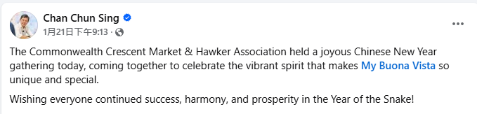 在1月21日,距离中国新年还有一周之际,陈振声已经在自己的脸书上,上传了一则居民一起捞鱼生的欢乐场景!
