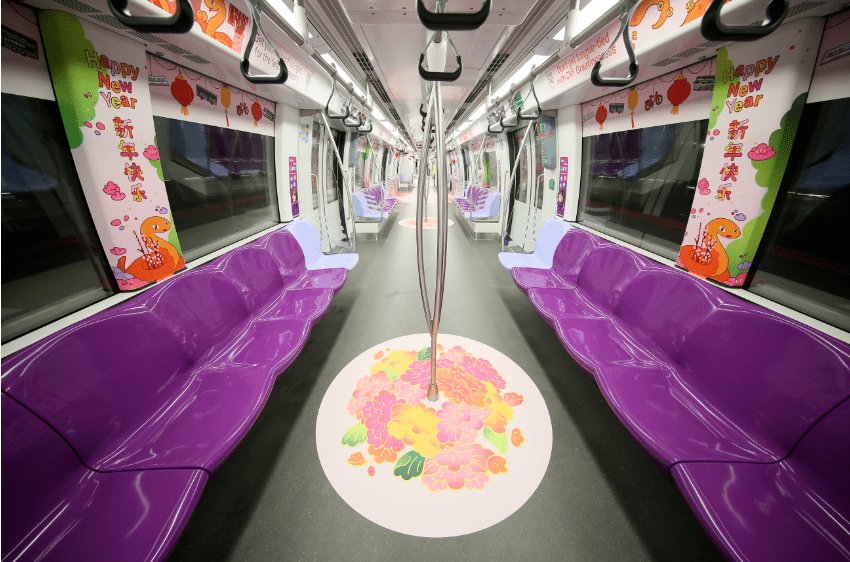 这些装饰将一直维持到2月13日,一共有6条地铁线路有春节车厢!