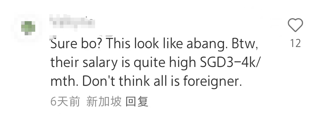 “你认真的吗?他们看起来是马来人哦。另外,这些人月薪有3-4千新币,可别以为所有(做这种苦力活的人)都是外国人。”