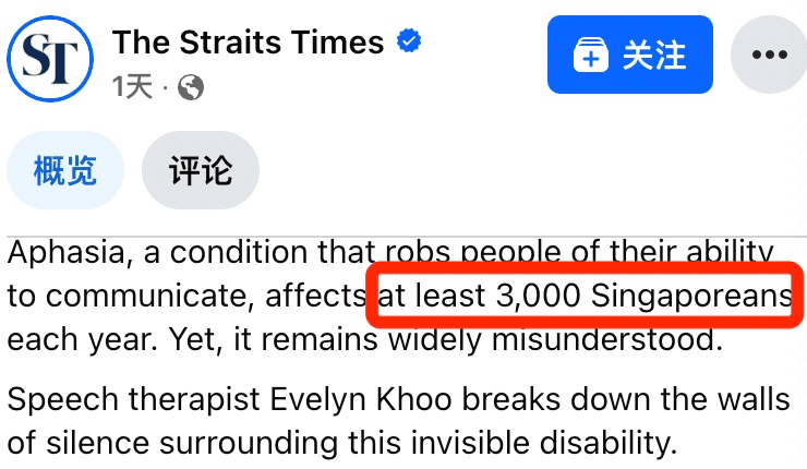 据最新数据,每年受失语症影响的至少有3000名新加坡人。