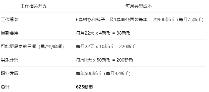 以下是一个粗略且非详尽的开支清单,以及我们认为在新加坡获得和保住一份工作所必需的一些基本项目的估算成本。