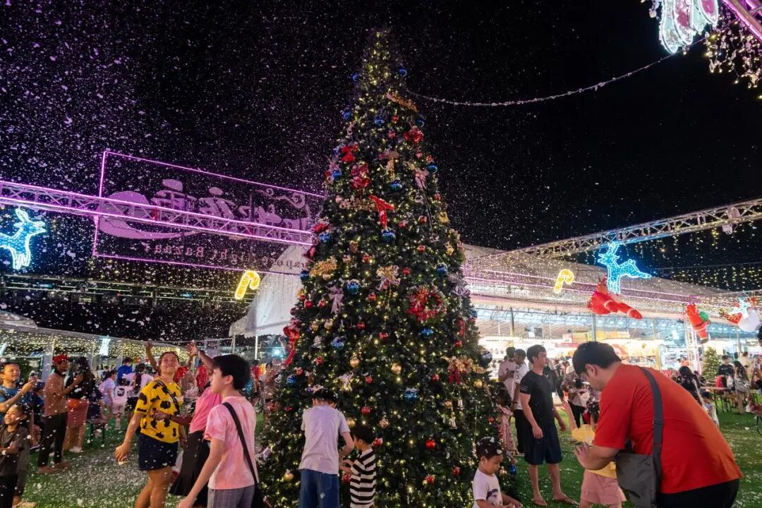 每晚两场人造雪飘落,搭配圣诞氛围,市集持续至 12 月 21 日,值得打卡。