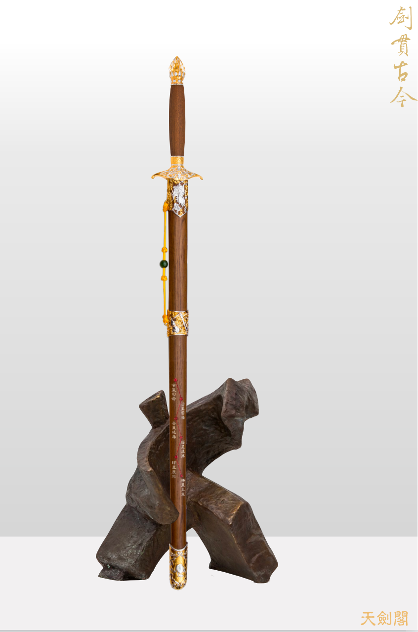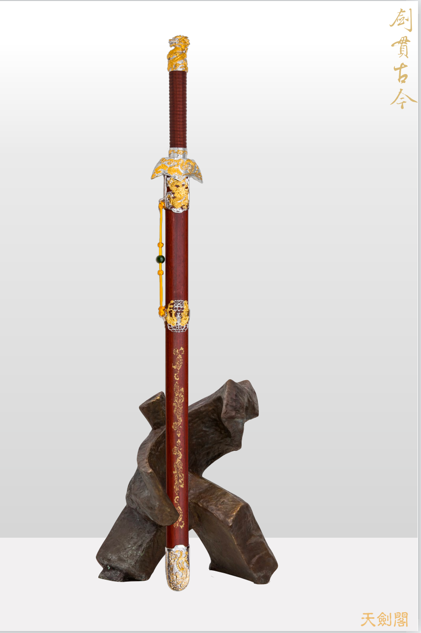 【龍淵】龍淵宝剑相传是欧冶子和干将两位大铸剑师联手所铸,两人为铸剑,凿开茨山放出山中溪水引至铸剑炉旁,成北斗七星环列的七星池中。剑成之后,俯视剑身如同登高山而下望深渊,飘渺而深遂,仿佛有如巨龙盘卧,故曰 :「龍淵」。