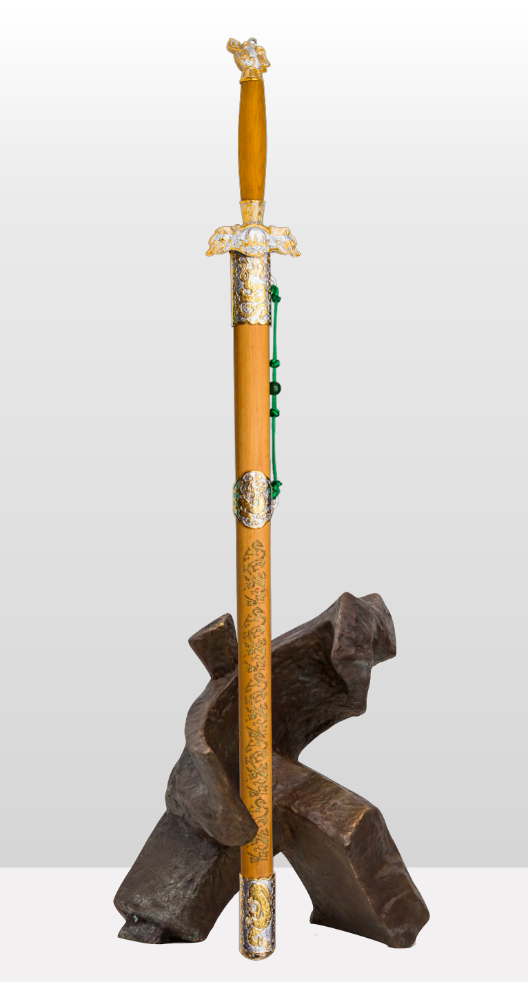 【湛盧】春秋时期的铸剑名匠—欧冶子曾为越王打造五把名剑,其中为首的「湛盧」宝剑,传因吴王阖闾无道,杀生以送死,滥杀无辜百姓为死去的女儿殉葬,宝剑竟自行出奔,「水行如楚」择主而事地到了楚王身边。在这些传说中,剑被人们认为具有降魔伏妖的能力,不但是礼器、法器,更是有自我意识的神器。