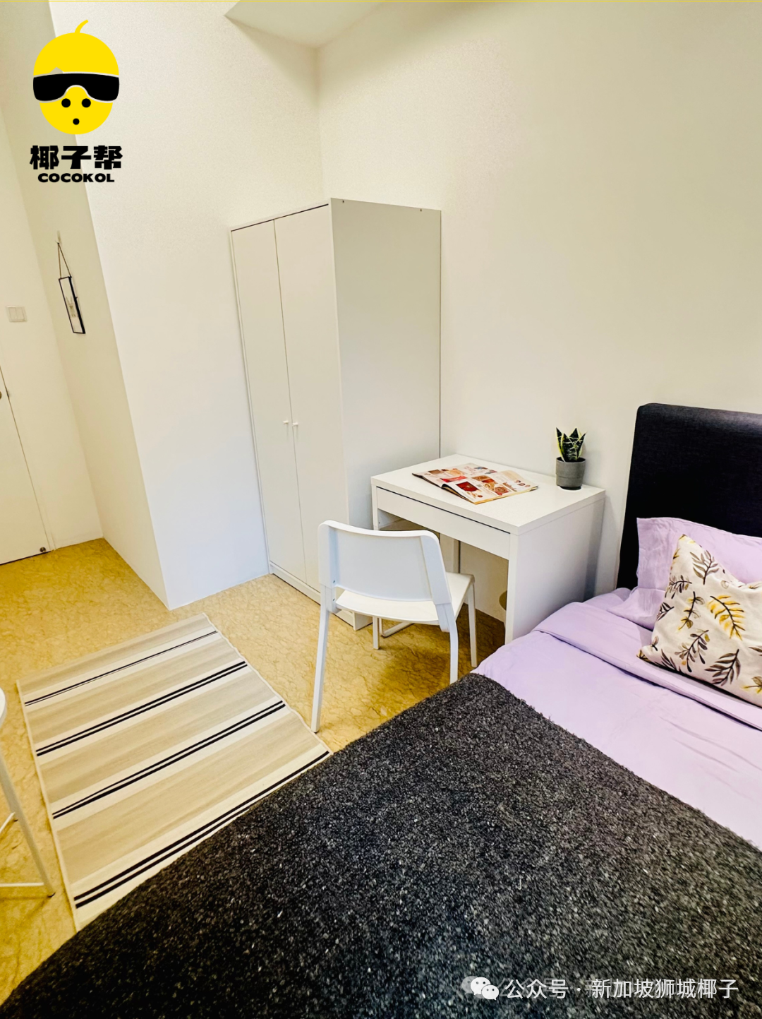 房间:Queen Size大床、空调、桌椅、衣柜,拎包入住