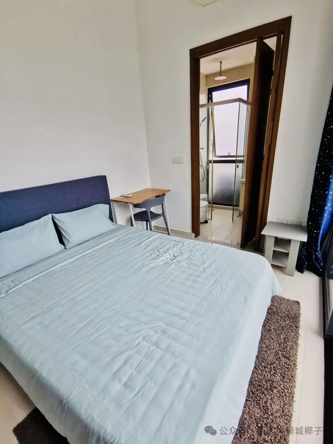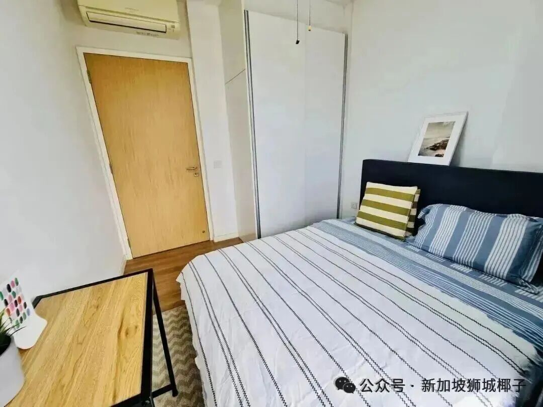 配置齐全:Queen大床、空调、衣柜、书桌全备,拎包入住