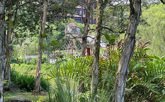 园内有儿童攀爬设施、森林探索区,是办公族、观鸟者及家庭的静谧休闲地,停车便利。