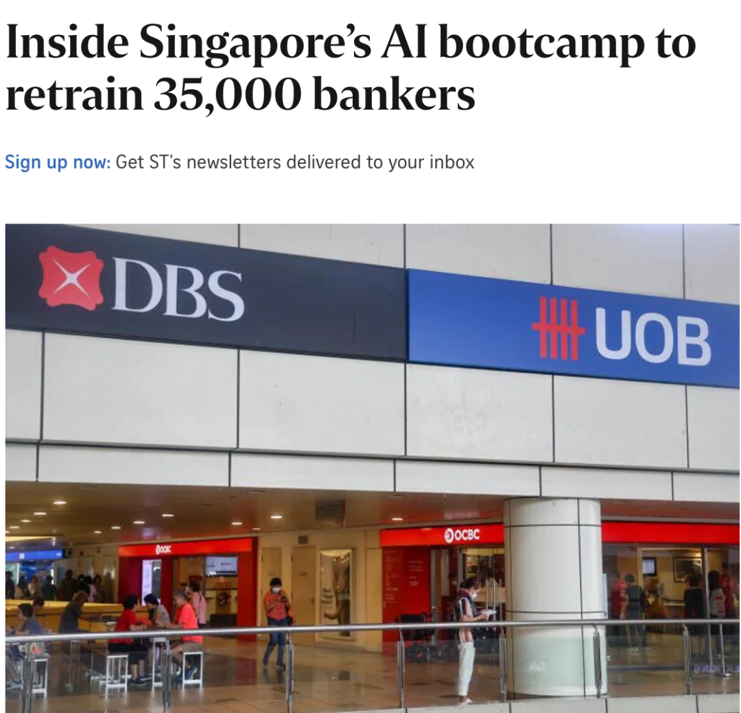为了避免员工被时代淘汰,新加坡金融行业正在系统性推进AI再培训计划,目标是在未来几年内让 3.5万名银行从业者掌握AI技能,从业务人员到后台支持岗位,几乎人人都要“返校学习”。