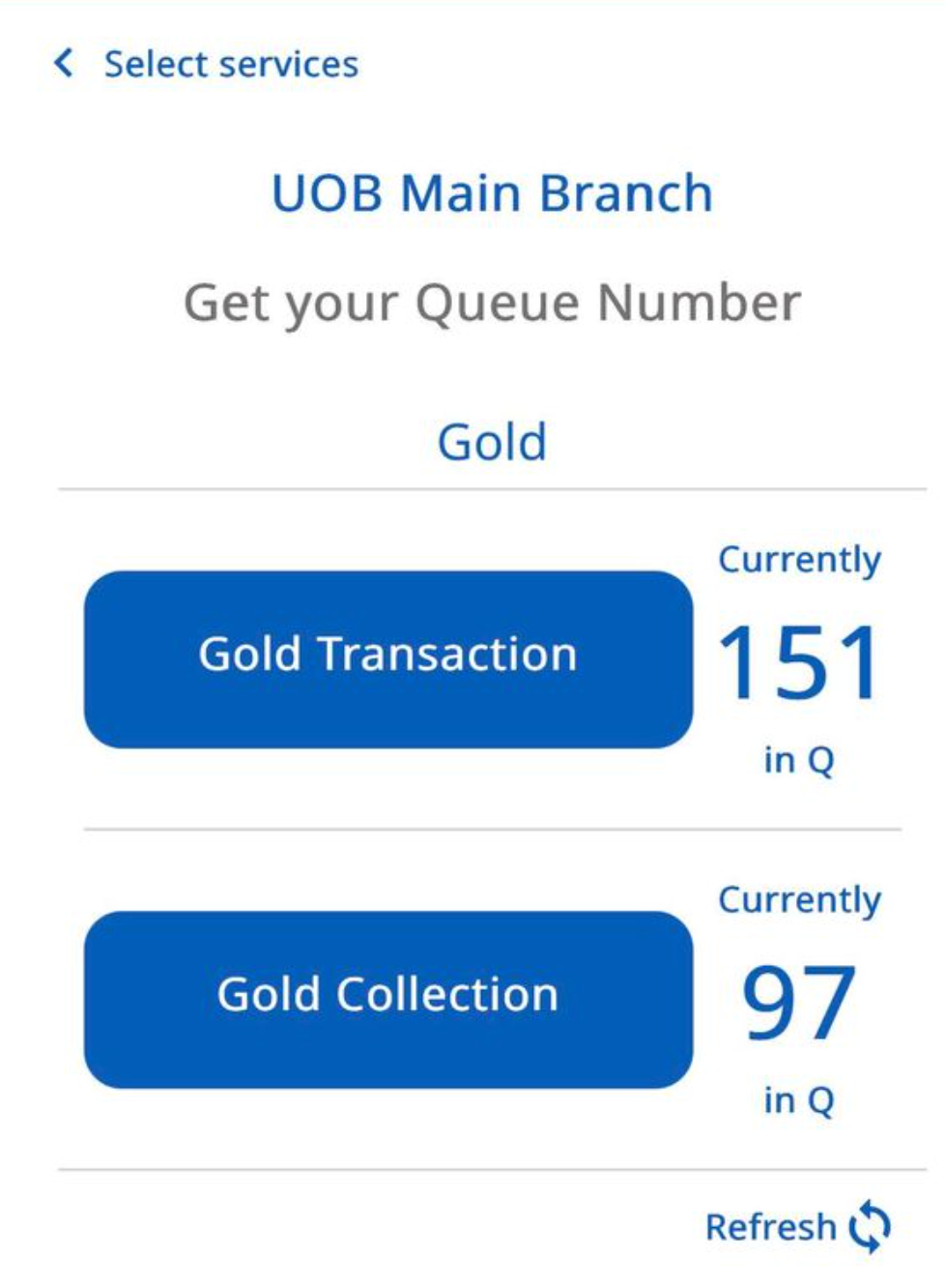 银行只有特定分行可以做黄金交易,一般是总行或大分行。要到现场提取,可以先在大华银行app线上预约。↓
