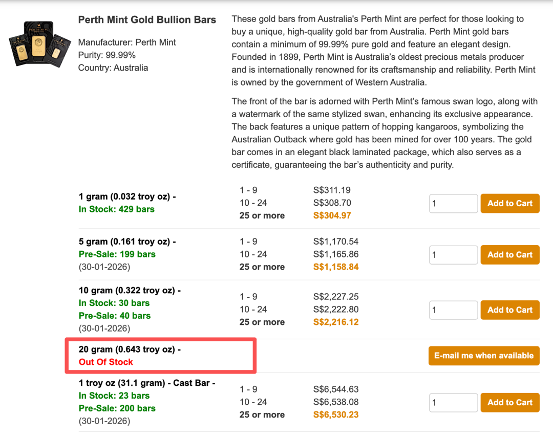 另外除了银行,想要以游客身份在新加坡买金,可以到Bullion Star,是除了银行以外本地人常用的购买贵金属平台(有线下门店):