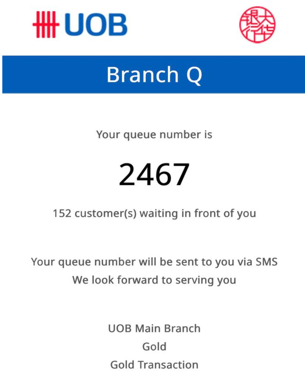 银行或授权贵金属柜台(例如 UOB 主分行等)