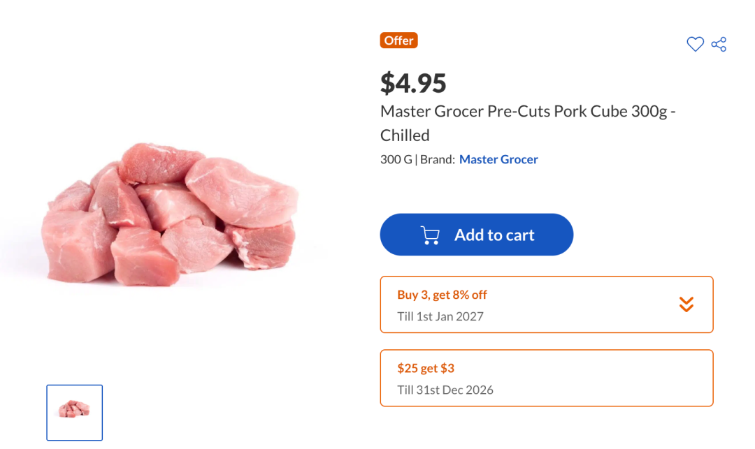 还有其他猪肉碎等,价格差不多300g是四五新币起步。