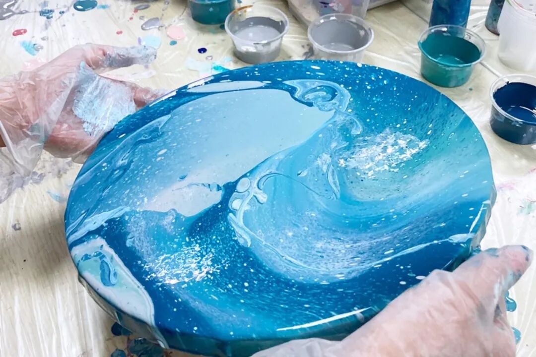Fluid Art Clock Workshop超值得体验!新手可学流体艺术基础技法,亲手制作实用时钟,含所有材料,109 新元,作品需烧制干燥,完成后可选择自提或新加坡境内免费配送。