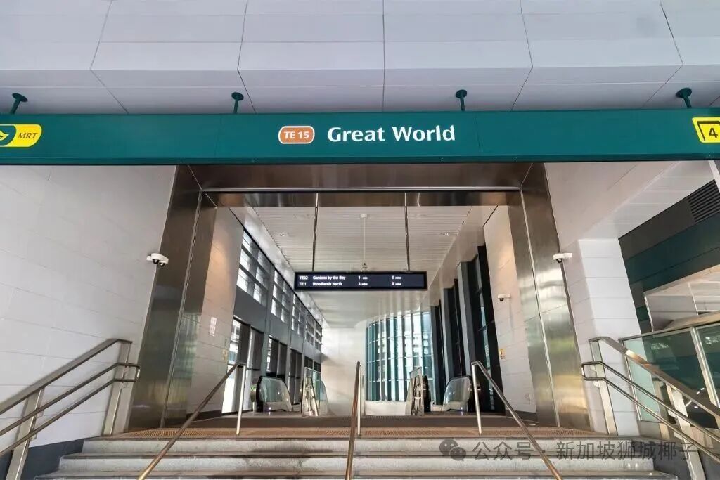 地下有盖通道,直接通到大世界地铁站(Great World MRT),汤申—东海岸线。