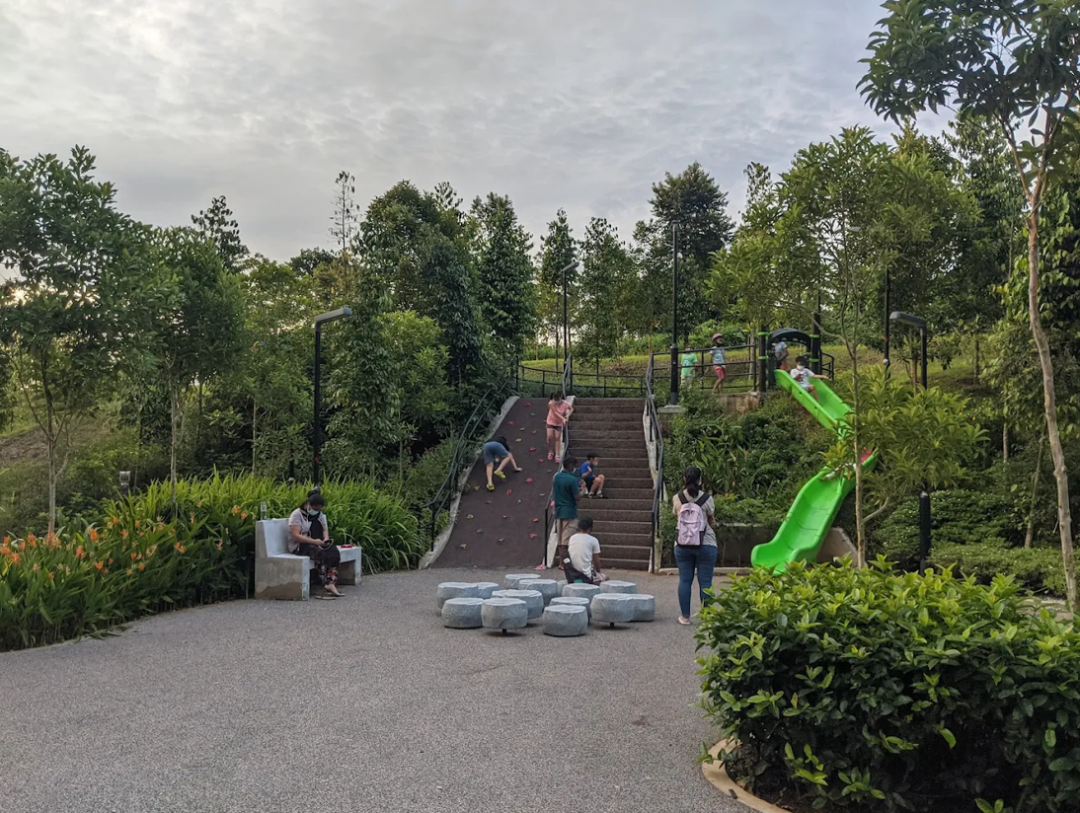 新加坡武吉甘柏公园依山而建,2021 年开放,集宠物乐园、儿童游乐场与山顶蝴蝶园于一体,多入口设计便捷,是居民赏景休闲、亲近自然的宁静好去处。
