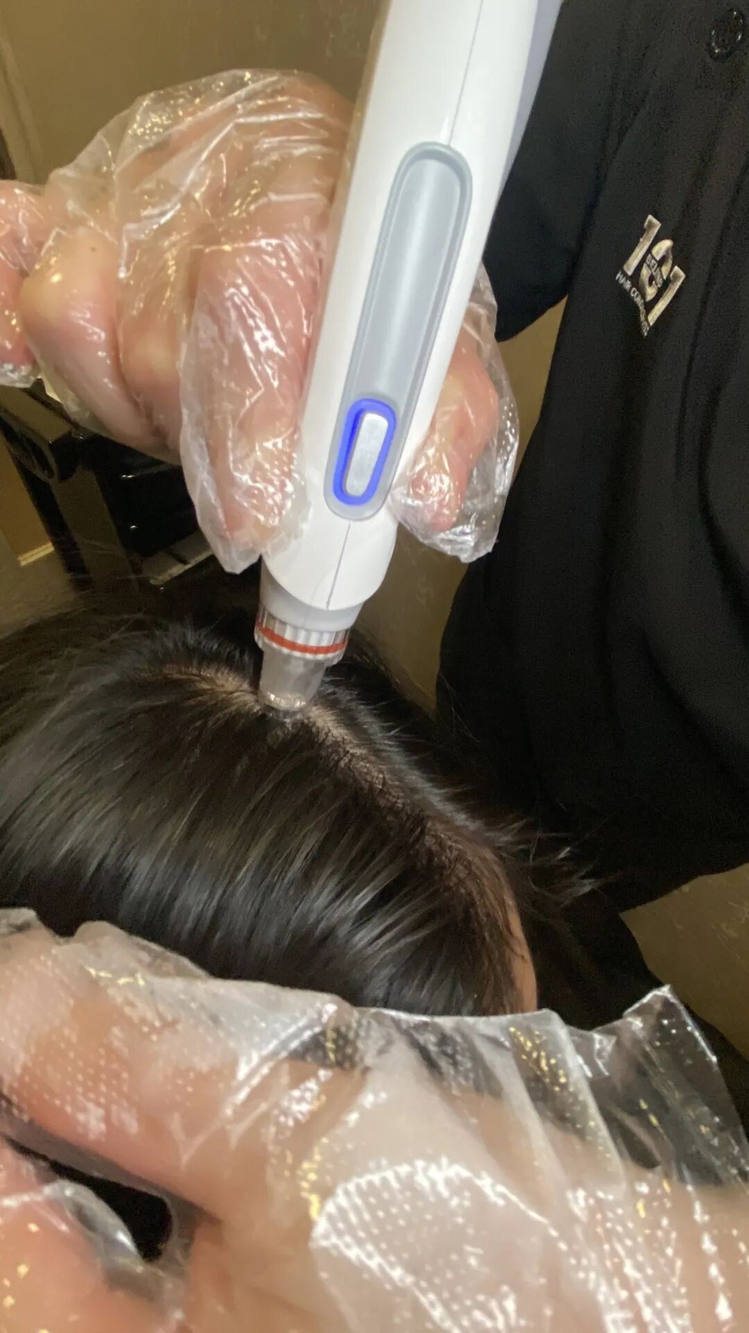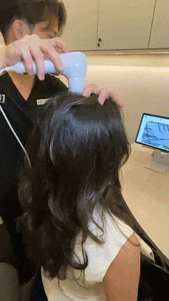 这一步真的舒服到不想结束!仪器轻贴头皮,温和的声波震动缓缓传来,搭配温热的精华慢慢渗透,没有丝毫异物感,只剩头皮逐渐放松的惬意。
