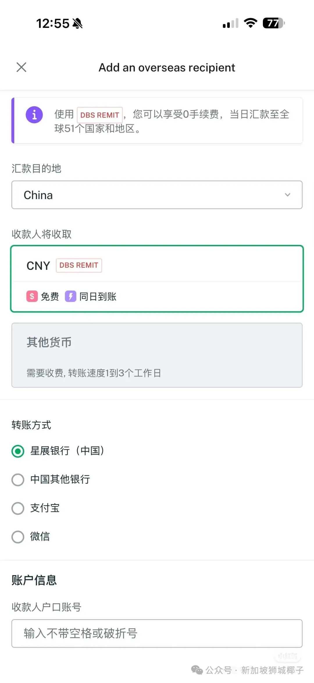 此次DBS又打通了汇款到微信支付的途径,意味着这个新加坡最大银行已经全面支持中国各大主流的汇款接收平台了~