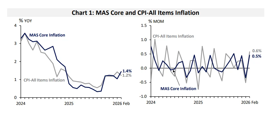 早在2026年初,新加坡的通胀形势就已经暗流涌动。2月份核心通胀率升至1.4%,一举创下自2024年12月以来整整两年的新高!