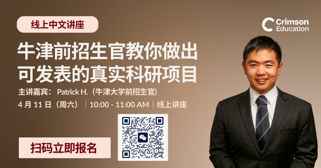 从牛津本硕博连读,到前招生官,再到7年+的战略导师经验,Patrick清楚什么样的科研能真正成为申请亮点。