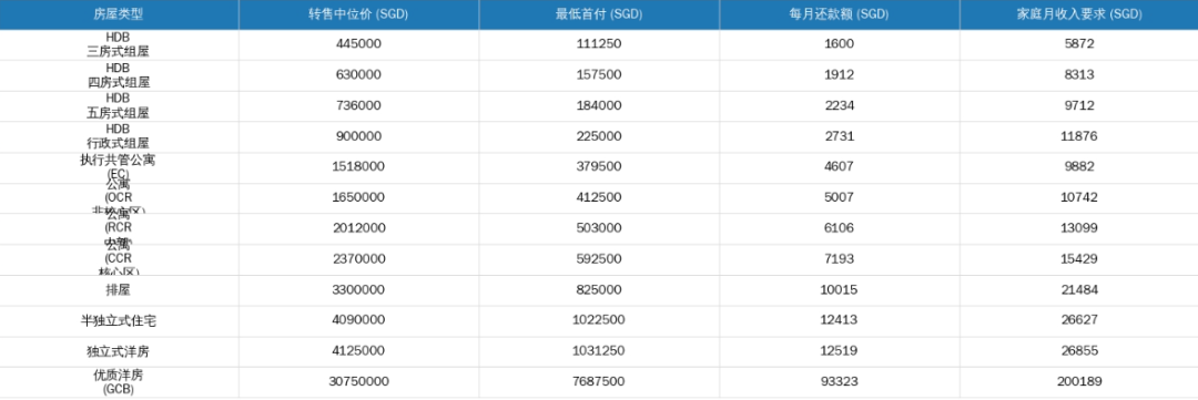 要负担有地房产的房贷还款,家庭月收入需要在21484新元至26855新元之间。