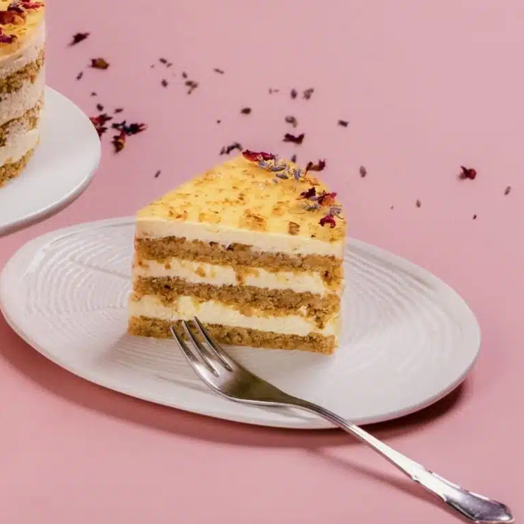 Locaba 这款母亲节限定纯素蛋糕,太适合偏爱健康轻食的妈妈!松软香草蛋糕胚叠着清爽柚子慕斯,顶层铺着清甜桂花冻,口感细腻顺滑。