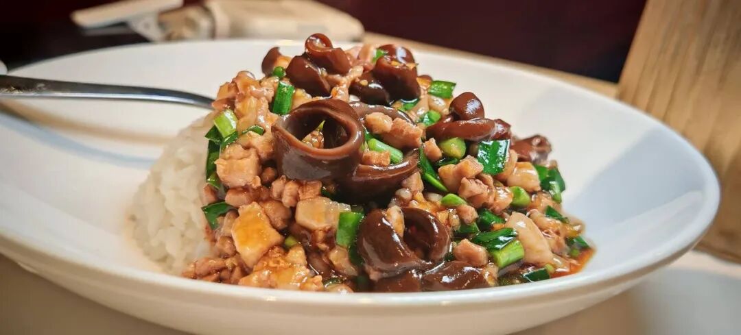 新鲜猪肉丁腌制入味、嫩到弹牙,海肠处理干净无腥、爽脆 Q 弹,咸香鲜酱汁裹满米饭,醇厚不腻,肉香混搭海鲜鲜甜,一口入魂,越吃越上头。