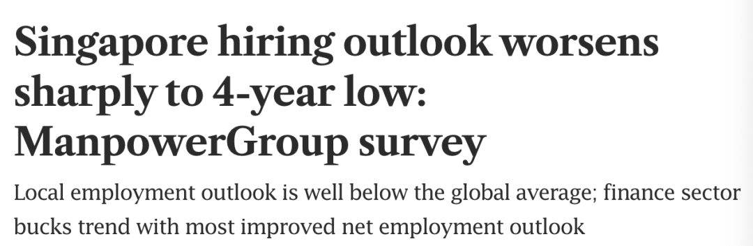 据ManpowerGroup的最新调查,2026 年第一季度新加坡企业的招聘信心跌到了 近四年来最低——净就业前景仅 +15%。相比之下,全球平均是 +24%。