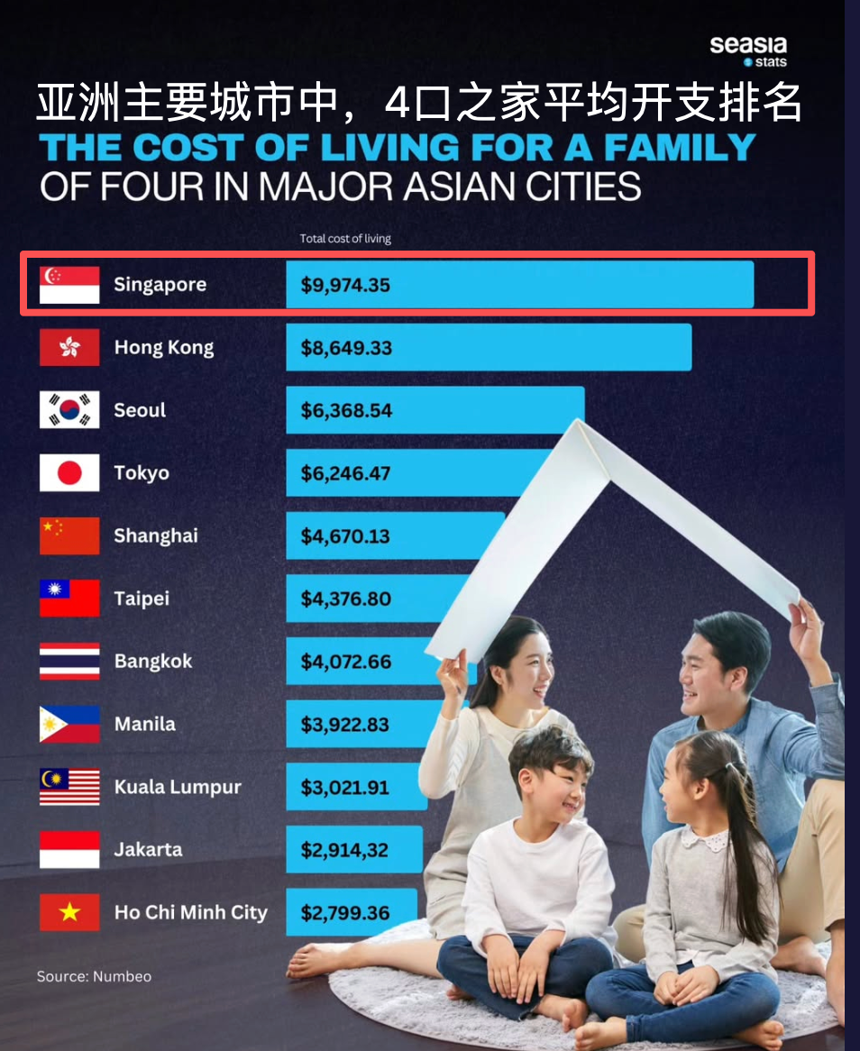 所以,在新加坡,一个典型“中产家庭”(夫妻+2 个孩子)每月刚性支出与贷款负担动辄在 9,000–15,000 新币 以上,这还没包括一些零散支出、旅行、储蓄、养老金、父母赡养等。