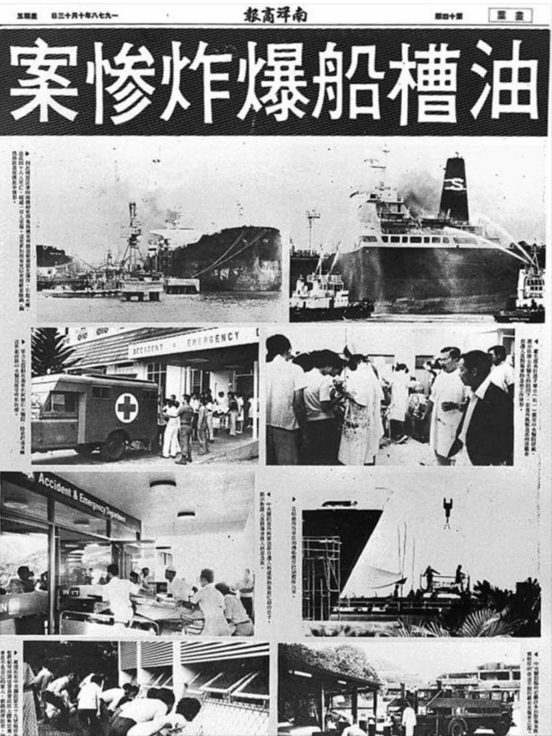 1968年10月12日下午2点左右,在裕廊造船厂进行维修的希腊油轮史拜罗斯号发生了严重爆炸。夺走76条人命,炸伤近百人。这是新加坡有史以来最严重的工伤事件。