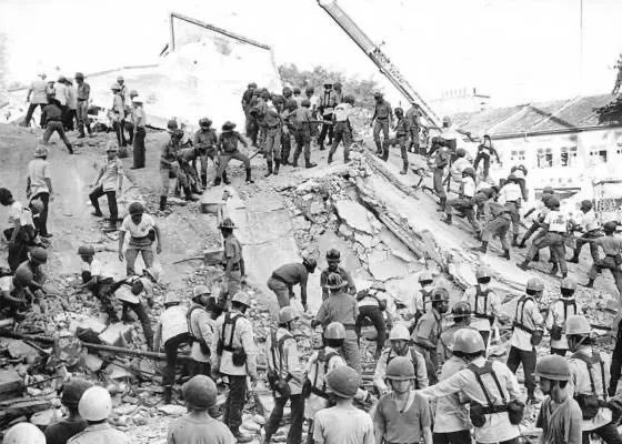 这家6层楼高的的新世界酒店于1986年3月15日倒塌,造成33人当场死亡。