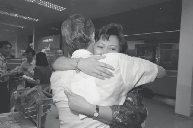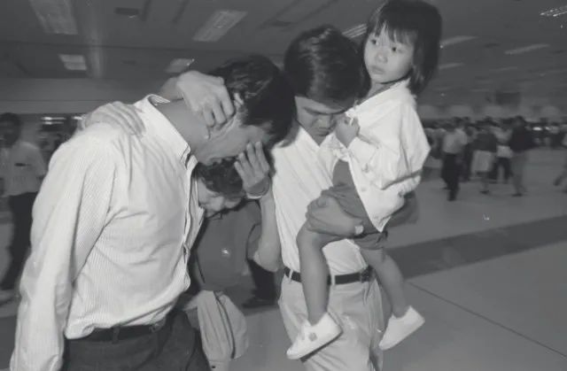 经历了生死劫难的乘客见到了在机场等待了一晚的亲人,露出了欣慰的笑容!